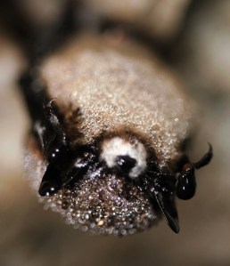 - This closeup photo taken April 25 shows the face of a hibernating little brown bat in Maine that’s stricken with white-nose syndrome, a disease that has killed more than one million bats across the Northeast and in Southern states.