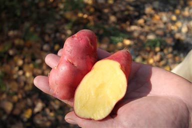 - The U.S. Senate has thrown its full support behind serving potatoes in school lunches. This potato has red skin and yellow flesh. AP Photo/Dan Joling