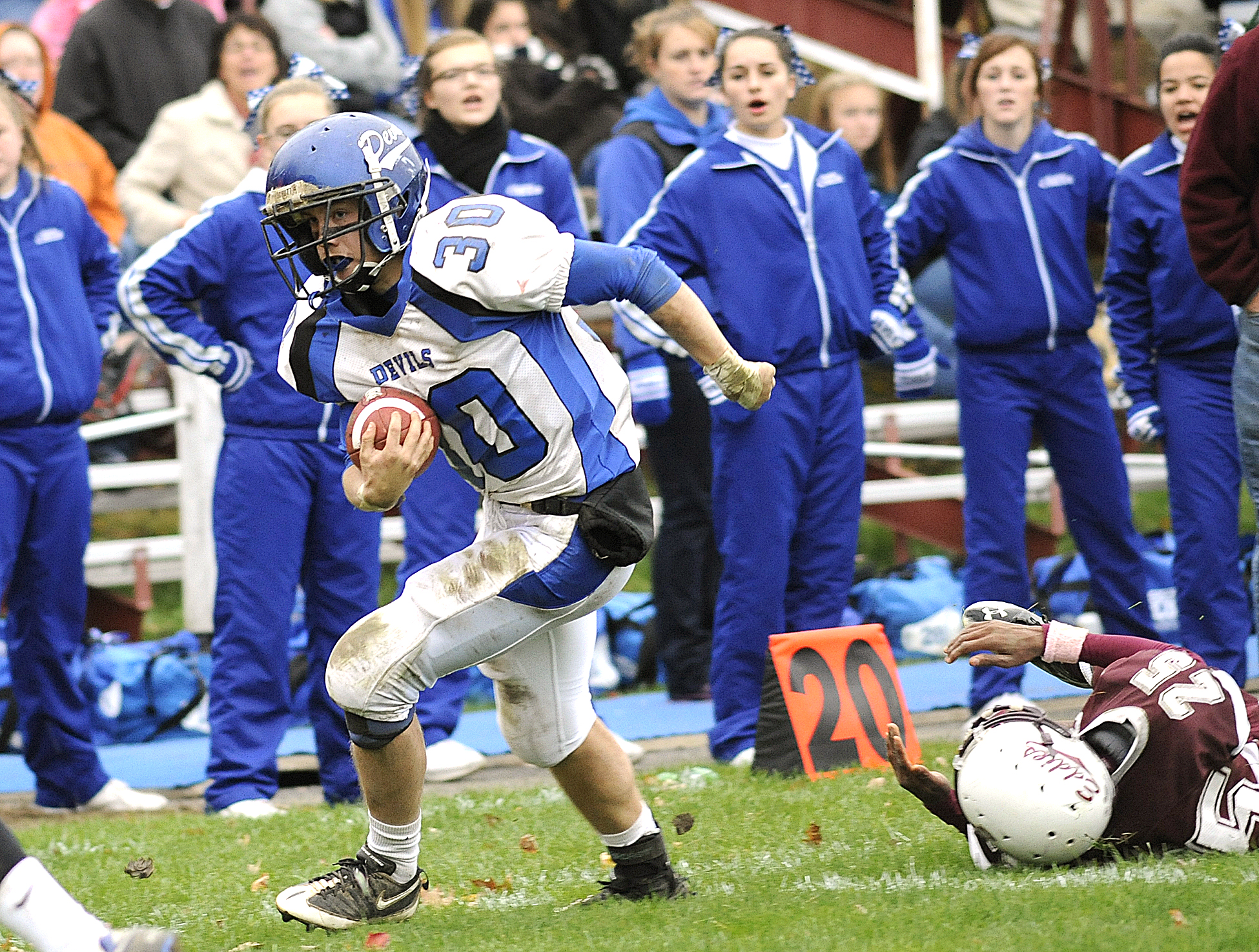 McKinnon (12 carries, 153 yards) made the most of his limited action. But it was Turcotte who answered the bell in the second half, rushing for touchdowns of six and 43 yards (on his final carry) to help the Blue Devils (5-4) pull away from a 20-9 halftime lead.