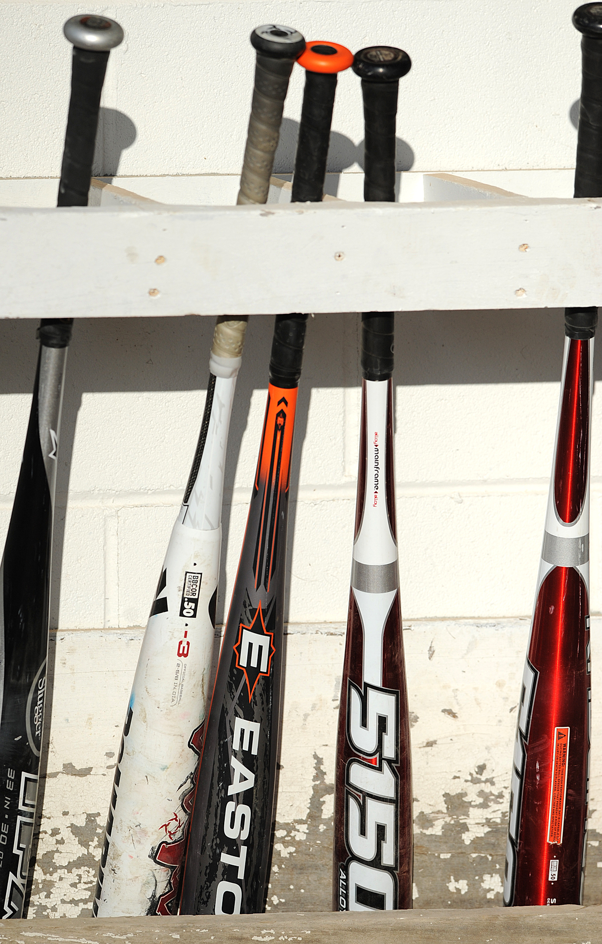 - New composite bats that are required this year are ready to be used in the dugout of the Gray New Gloucester Patriots during their first game of the season last week against Poland.