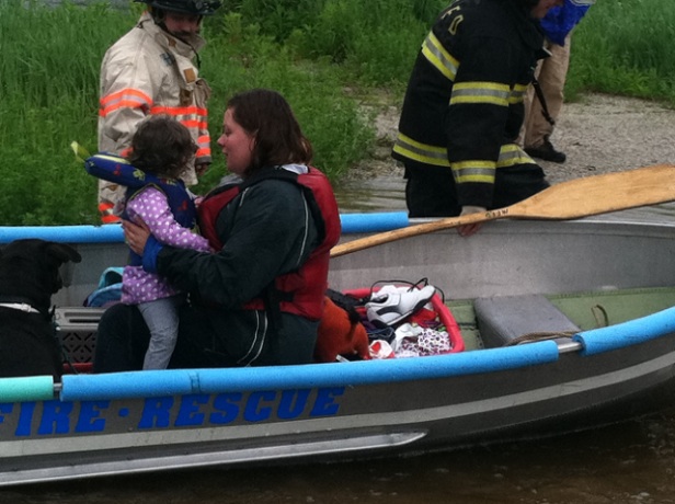 WMTW is reporting that rescue crews used a boat to remove Chelsea Roberts and her daughter and pets from her home. The family was taken to safety.