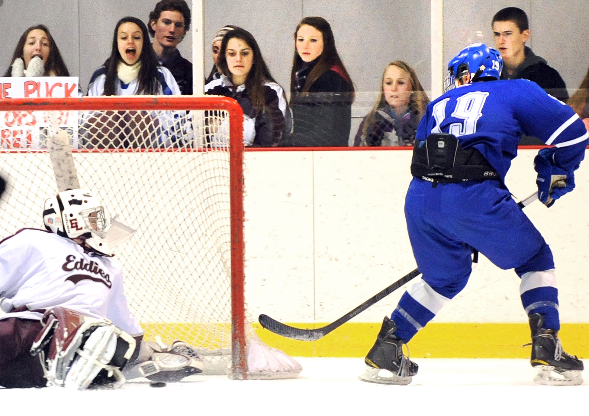 Lewiston dominated the first period territorially, but had nothing to show for it on the scoreboard. Most of the Blue Devils’ shots came from the perimeter, and the Eddies did well to limit their second-chance opportunities in front of Gosselin.