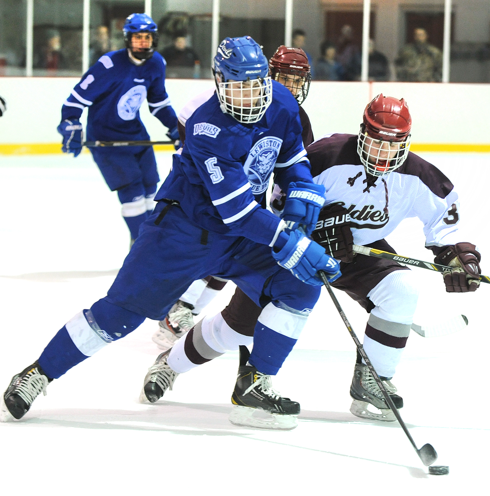 Lewiston took all of 25 seconds to retake the lead. Matt Poulin crashed the cage and redirected a Lemelin feed from the left corner past Gosselin to reestablish the Blue Devils’ one-goal advantage.