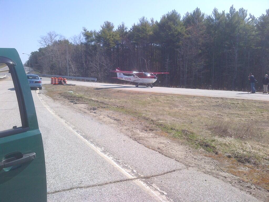 Randy Greenleaf of Litchfield said he was at home near the Turnpike when he heard the plane’s engine cut out. He then saw the plane glide to the highwayand heard it touch down on pavement. Greenleaf was able to make it to the highway to see it coast up the Turnpike behind a truck.