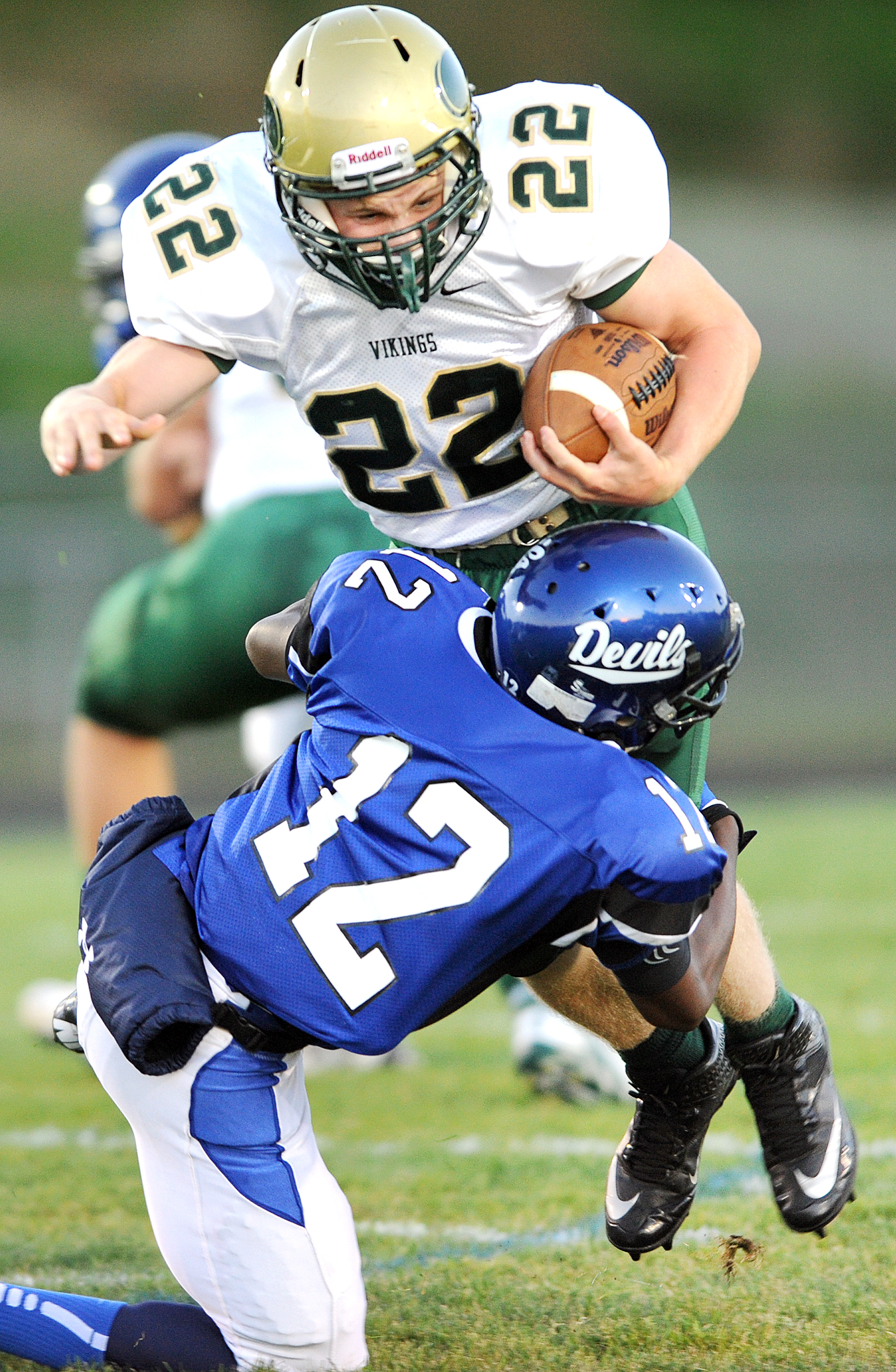 Geiger’s numbers were as Jensenian as his relentless attitude — 39 carries, 237 yards, three touchdowns — in the Vikings’ 34-28 Eastern Class A football win over the Blue Devils.