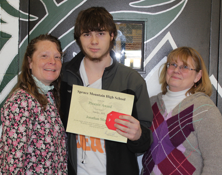 - Jonathan Morse has been selected as the Phoenix award winner for February at Spruce Mountain High School. The junior is pictured with his mother, Nancy Fogg, and his aunt, Carol Roy.