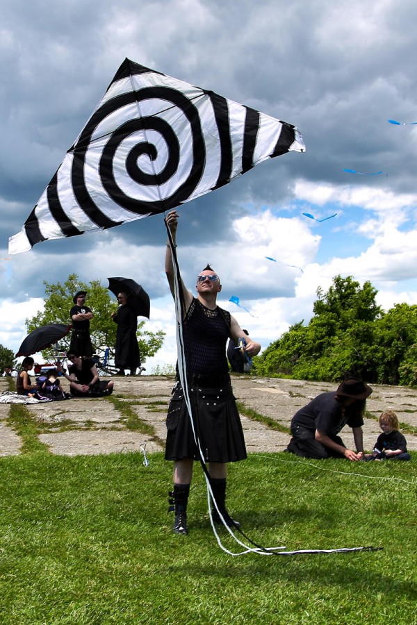 The first year it rained, and only six kite-fliers turned out, said Ian Graham, who founded the event. But it’s grown steadily over time, and on June 7, over 100 people came to picnic, drink a few beers and, of course, fly kites, in full Goth regalia.