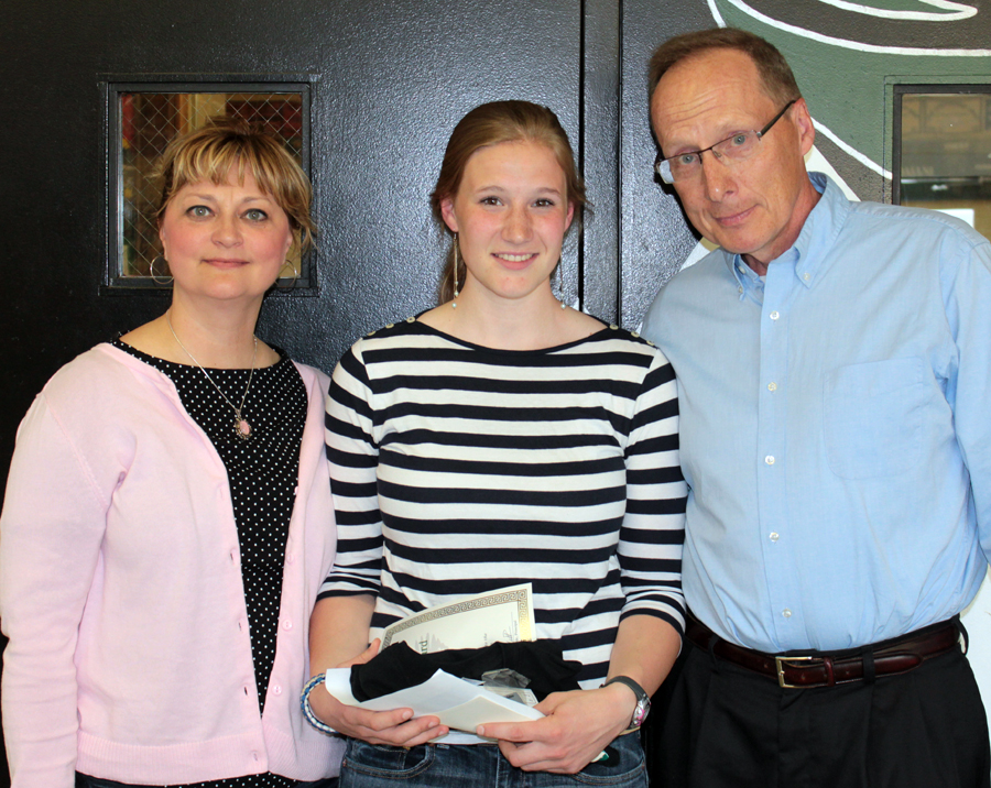 - May Student of the Month Gretchen Krout is pictured with her parents Lisa and Roy Krout.