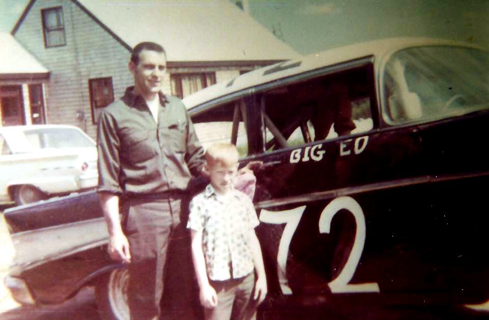Bruce Haley stands with his father, Ed Haley, in this prized family image. Ed competed at Oxford in the old Charger division in the 1960s. For Bruce, his love for racing was cultivated at an early age.