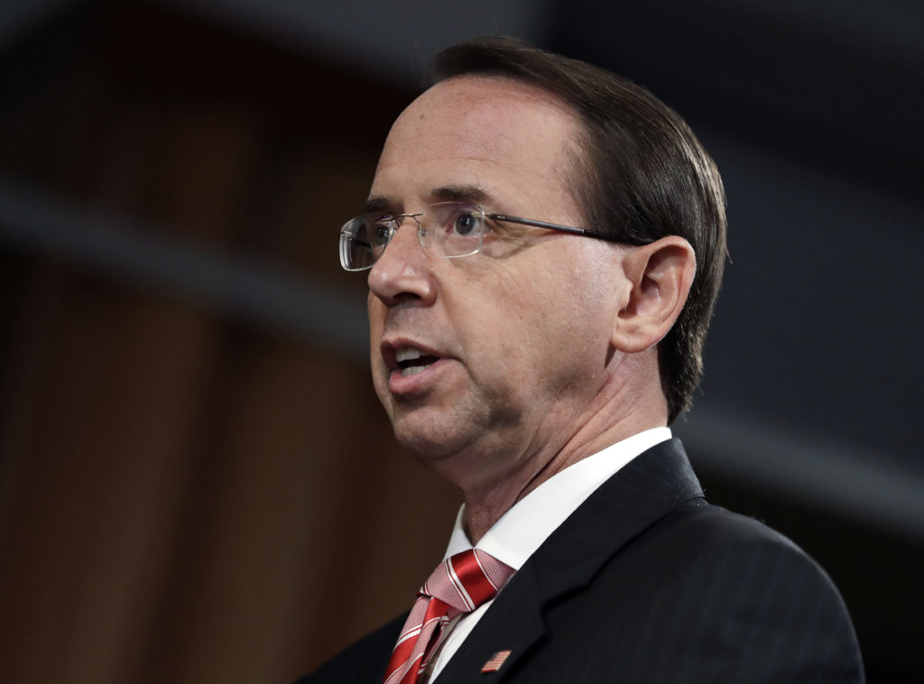 Deputy Attorney General Rod Rosenstein speaks during a news conference at the Department of Justice, Friday, July 13, 2018, in Washington. (AP Photo/Evan Vucci)