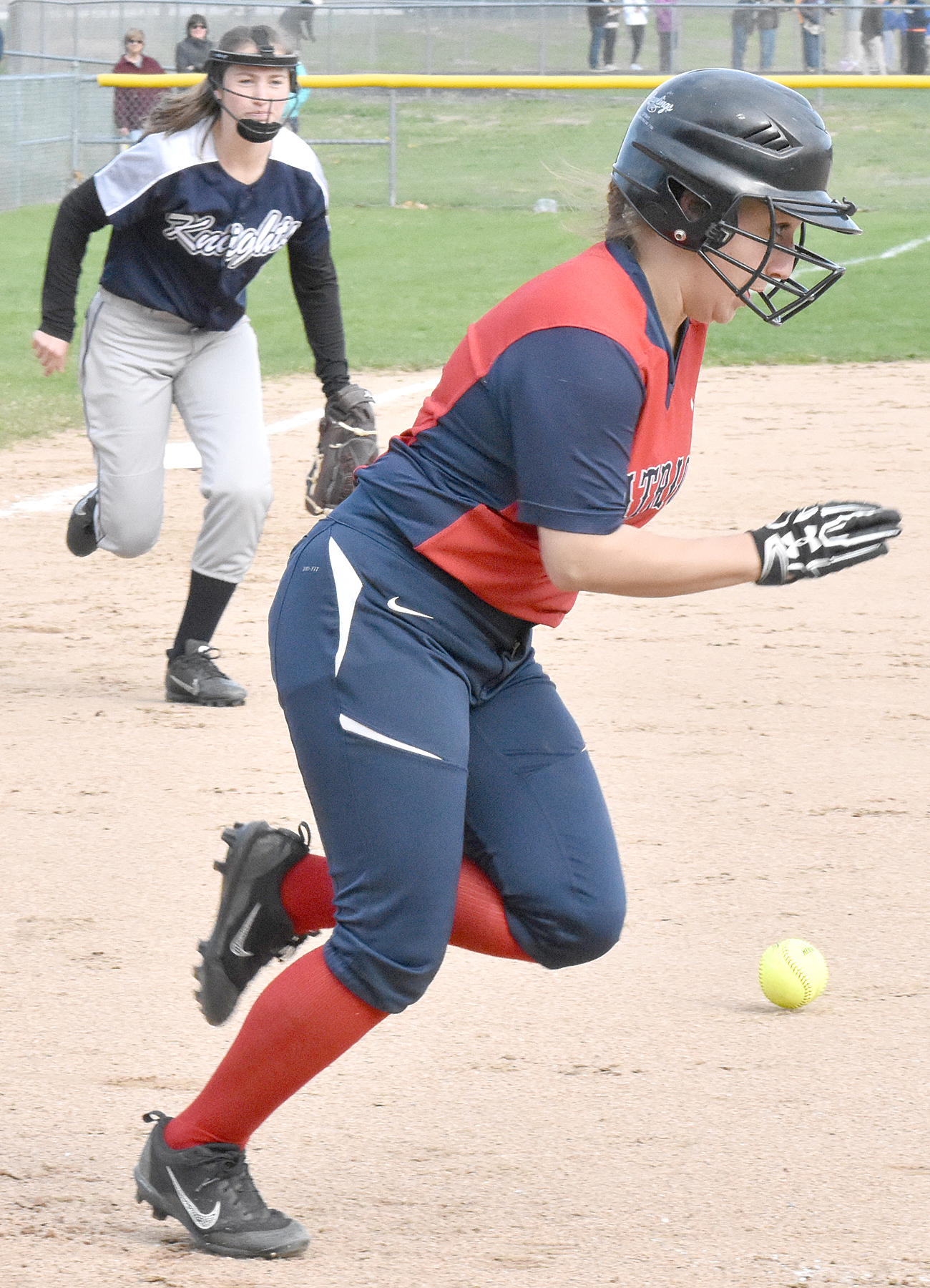 The Knights tied it in the fourth when Karley O’Leary walked for the second of three times and scored on an error.