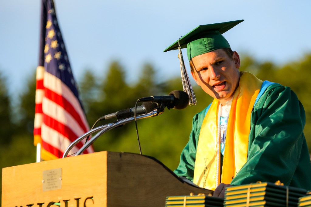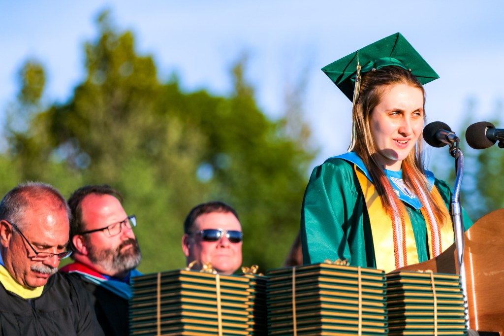“What you do now, what path you take is yours,” she said. “You are in control of your work in progress. The choices are now yours. Those choices will be guided by your family and friends, and the foundation you have built in these hills. It is your path, your dream, your work in progress.”