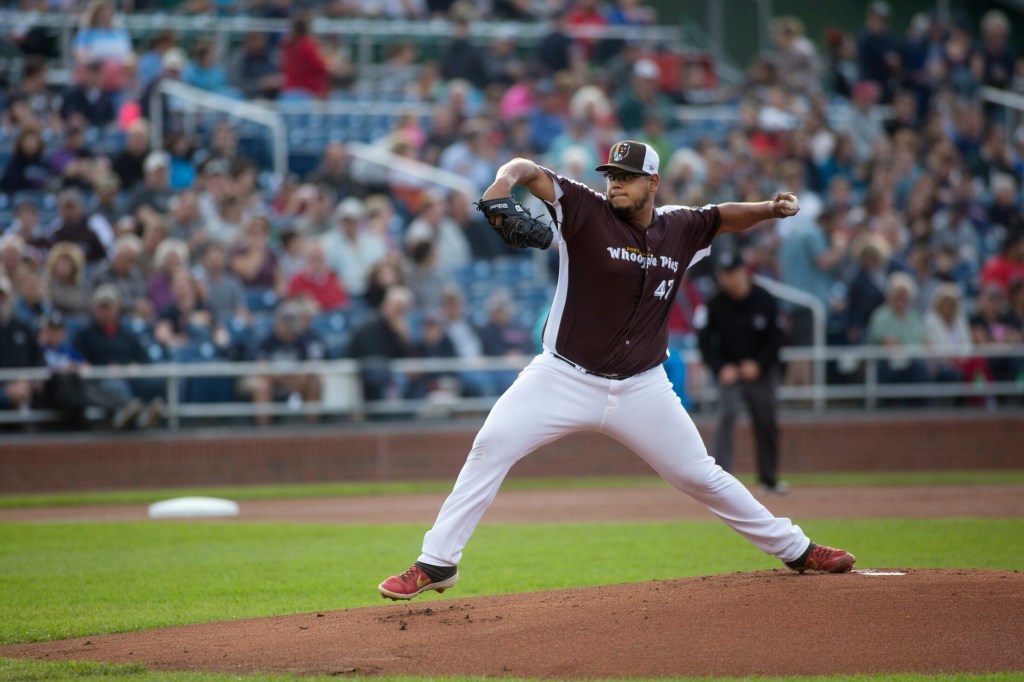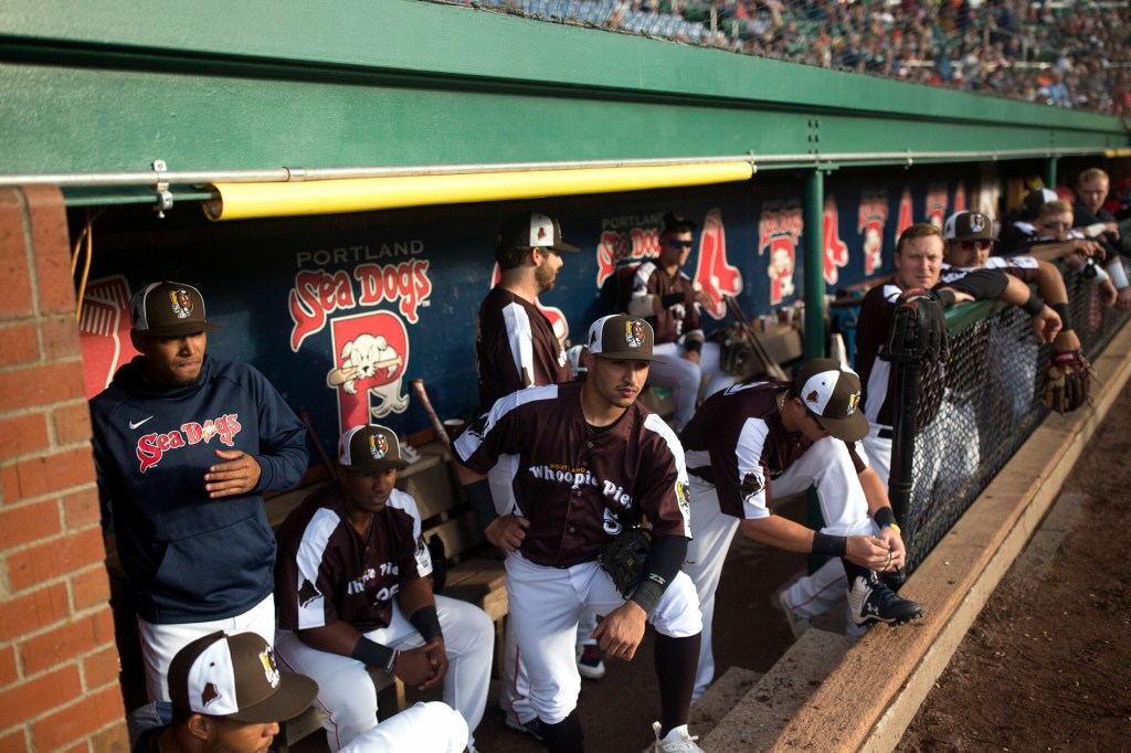 In a first-ever promotion for the Sea Dogs, the team played under the name “Whoopie Pies,” complete with brown-and-white jerseys and caps. The team has varied its uniform before but has never changed its name. The promotion featured plenty of apparel – which kept the gift shop buzzing – as the team celebrated the official state treat of Maine, and the Maine Whoopie Pie Festival on Saturday in Dover-Foxcroft.