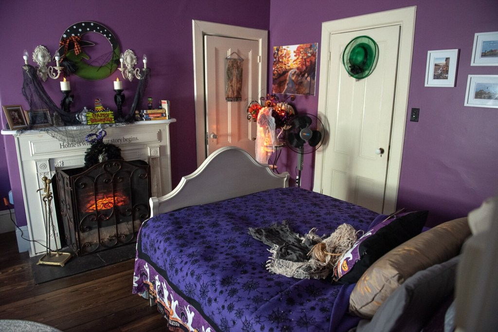 Despite the Halloween vibe that now fills her home, trick-or-treaters showing up at Mass’s door this year won’t be able to go into her haunted house. Narrow halls are not conducive to crowds.