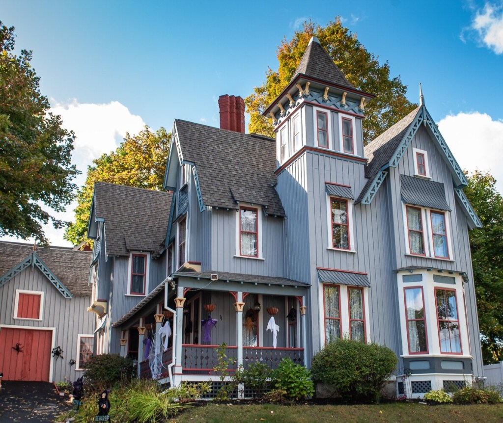 A witch guards the Gothic revival-style Auburn home owned by Mindy Mass and her husband. The couple bought the house on Forest Avenue sight unseen after Mindy came across it online. Russ Dillingham/Sun Journal Buy this Photo