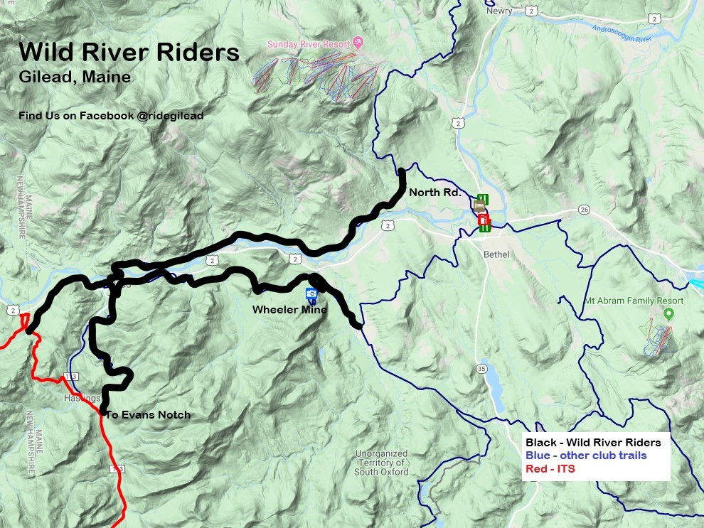Wild River Riders maintains 30 miles of trails linking Maine to New Hampshire and Evans Notch, as well as connecting with the Stoneham Knight Riders and Greenstock clubs’ trails.