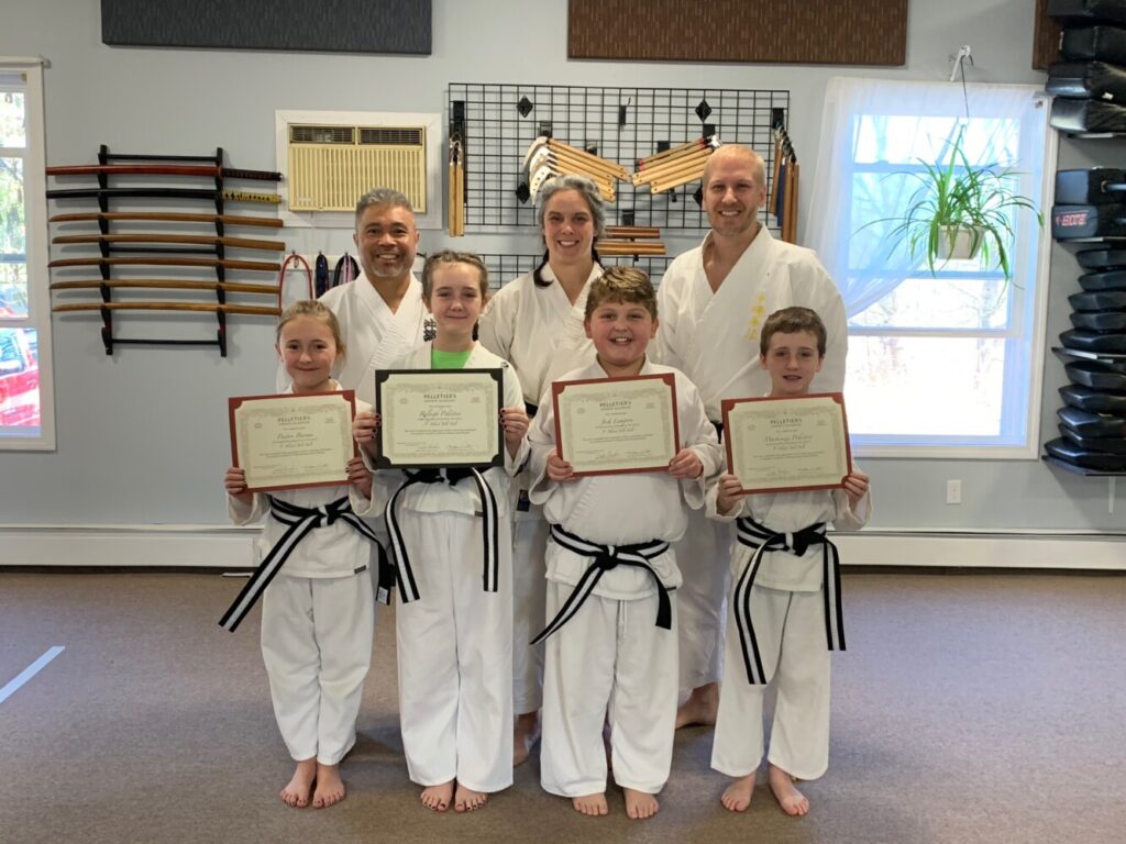 LEWISTON —Pelletier’s Karate Academy congratulates Payton Bureau, Ryleigh Pelletier, Josh Lampron, and Mackenzie Pelletier for successfully earning their junior black belts. All four performed a strenuous physical fitness test, basics, katas (set series of movements), kobudo (traditional weapons), and self-defense, and demonstrated knowledge of karate history and terminology.