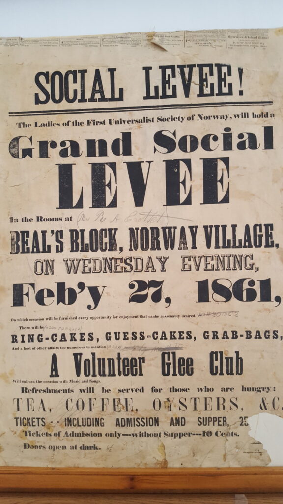 The Society is located at the corner of Main and Whitman Streets in downtown Norway; more information can be found at www.norwayhistoricalsociety.org. The museum is open to the public year round on Saturdays from 9 a.m. to 12 p.m., Tuesdays from 1 p.m. to 4 p.m. during the summer, and by appointment. Admission is free.