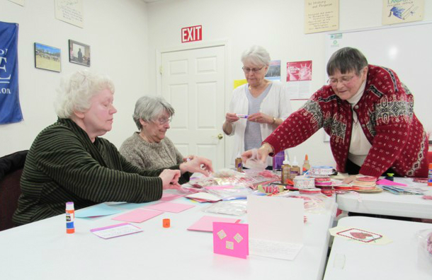 Linda Gramlich, Sheryl Titcomb, Barbara Lambert, and Amy Palmer are making Valentine cards for Hospice. Submitted photo