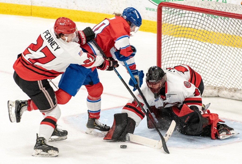 Stefan Owens tried to beat Pugliese on a wraparound but couldn’t, the puck bounced off Pugliese’s pad into the air, but Kevin Pitts batted the puck home for the Nordiques’ second goal just past the eight-minute mark of the final period.
