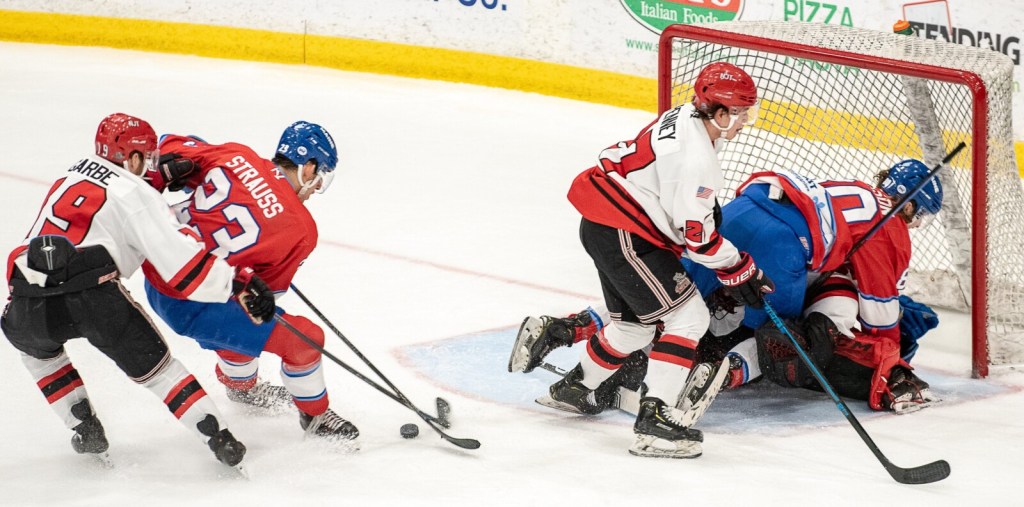 At the start of the second period, Avery Sturtz (21 saves) replaced Mankowski (seven saves) as Maine’s goalie.