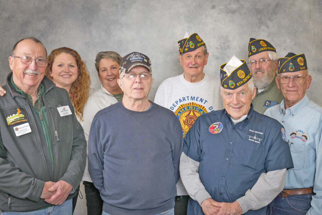 L to R Front: David Patch, Commander Post 36, Albert Lake, Sgt.-at-Arms Post 68, Richard Grover, Adjutant, Post 81, Norm Clanton, 1st Vice Post 81, 2nd Row: Angelina Henderson, USN (Ret.), JoAnne McMahon, Post 20 – Co-Chair Veterans No Boundaries, Harry G. Orcutt, Commander Post 68, Raymond Hakala, Finance Officer Post 68. Stonetree Creative Photo Studios
