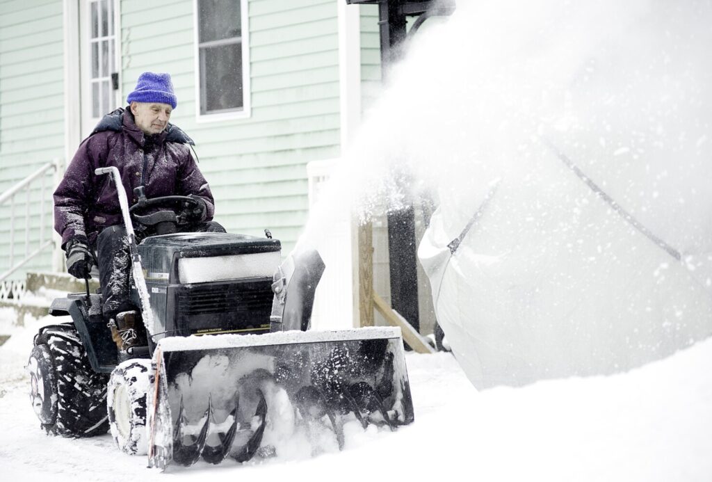 Joseph Lavertu clears his driveway in Auburn on Thursday. “This is not bad,” he said. “It’s the rain and sleet coming in that I’m worried about.” Daryn Slover/Sun Journal Buy this Photo