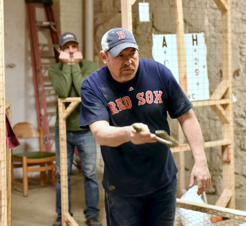 Thibeault was one of several local people who jumped in to help when Currier decided to set up his indoor courts. Why wouldn’t they want to help? If horseshoes is your game, the long winter months can be miserable. And as it turns out, pitching horseshoes indoors isn’t much different than pitching them outside. It’s really just the ambiance that takes getting used to.