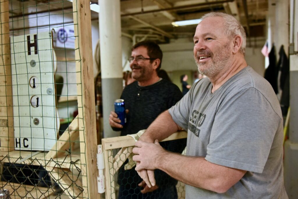 That’s the general idea around the vast room. When Currier and his wife opened Maine Indoor Horseshoe Courts five years ago, they found no shortage of people who were into the idea of pitching shoes in wintertime.