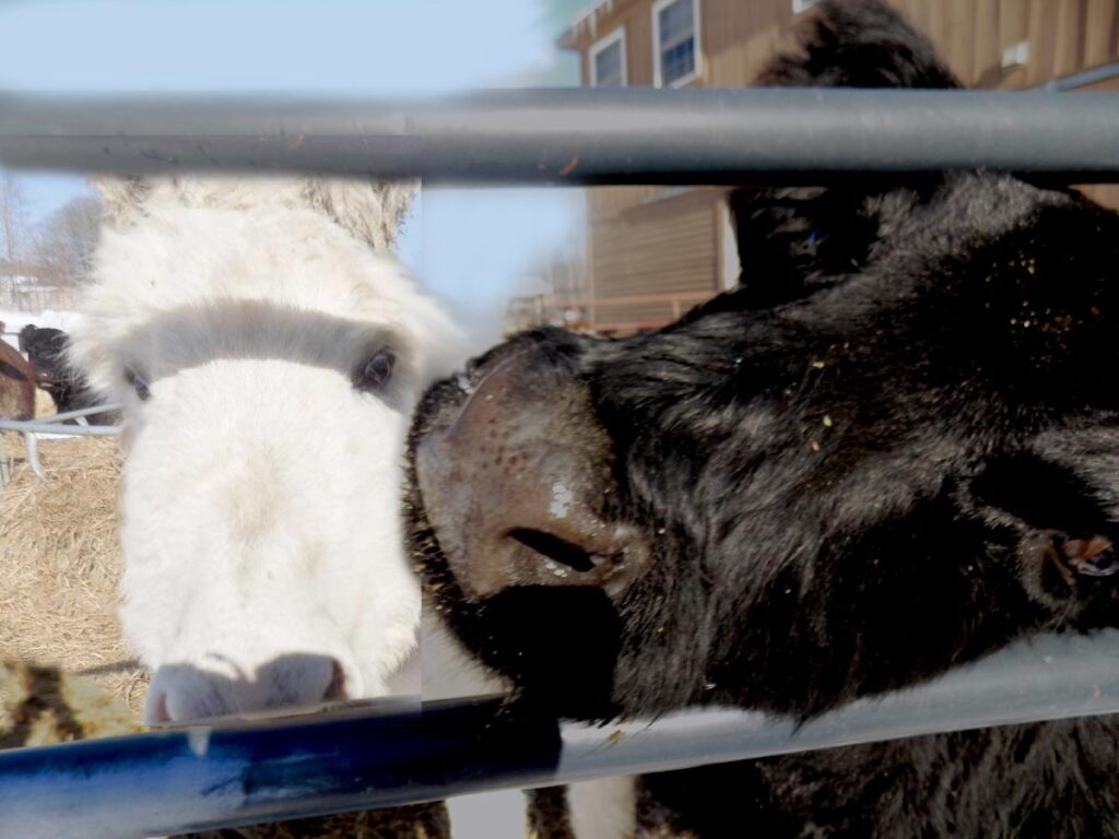 On Friday, Feb. 21, a donkey and a Belted Galloway heifer at Colby Woods Cattle Farm in Jay vie for attention from a visitor. Pam Harnden/Livermore Falls Advertiser Buy this Photo