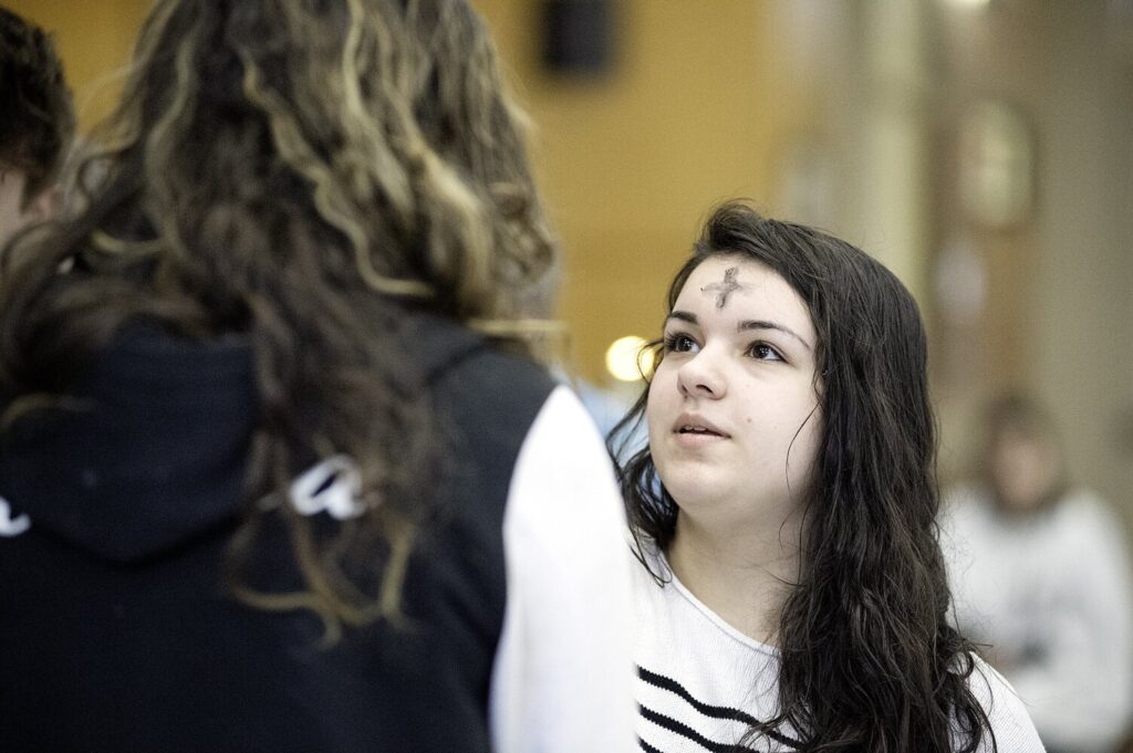 Gabrielle Allen walks back to her seat after having ashes placed on her forehead during Ash Wednesday mass at Saint Dominic Academy in Auburn on Wednesday. Ash Wednesday begins the season of Lent. Daryn Slover/Sun Journal Buy this Photo