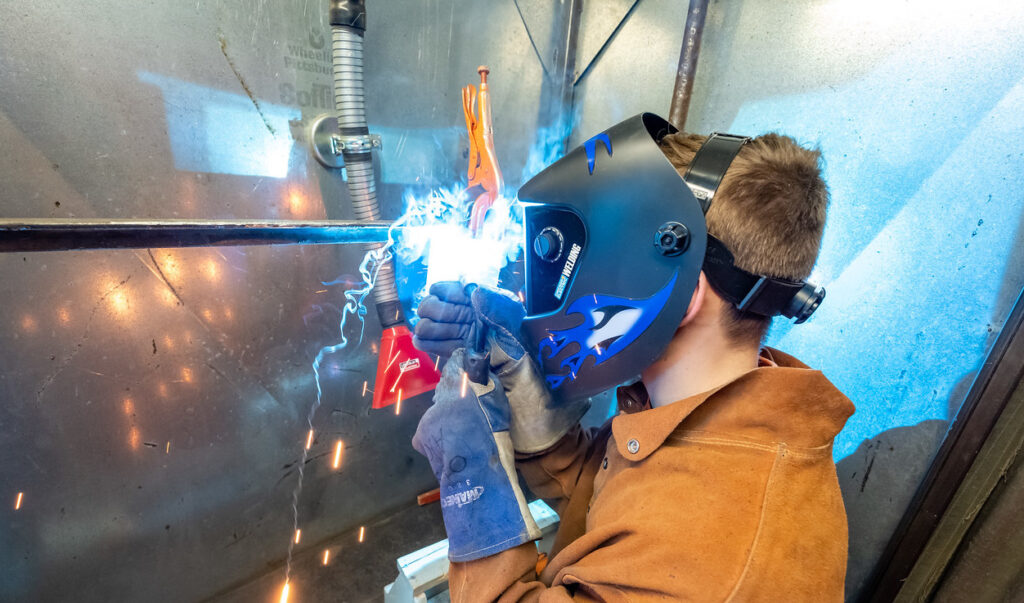 Student Logan Dudley demonstrates welding during the 2020 annual Oxford Hills Tech Challenge at Oxford Hills Technical School in Paris in January. Courtesy Brewster Burns