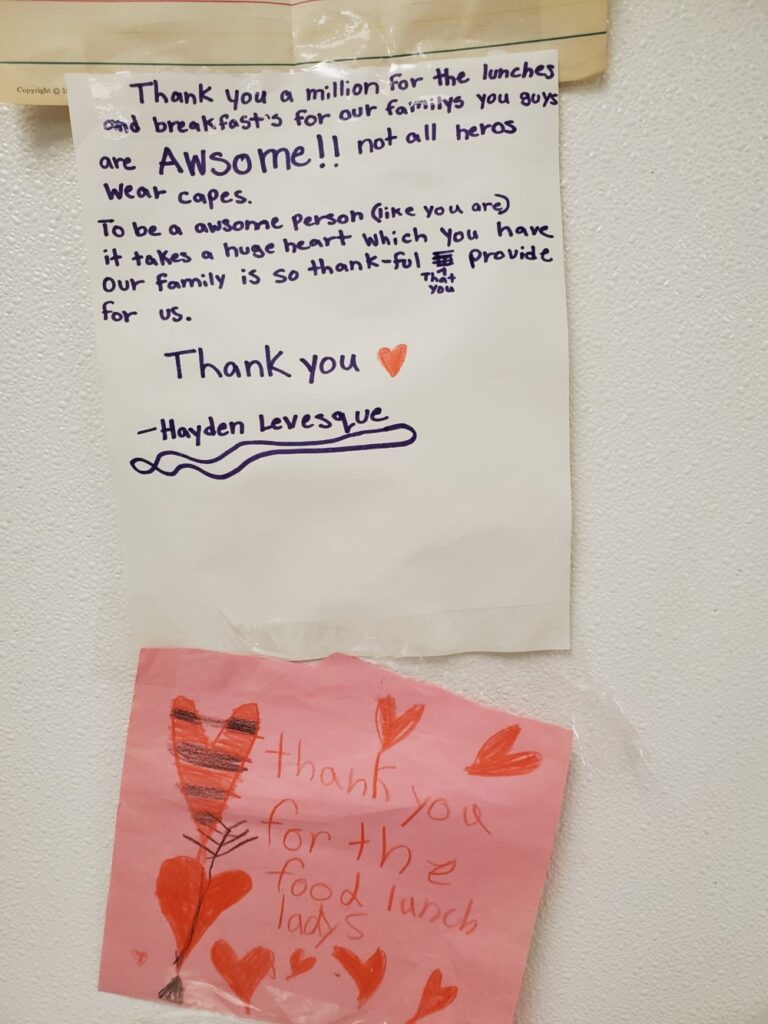 Two thank you notes SAD 17 Food Service Director that Jodi Truman has received during school bus lunch delivery. Submitted photo