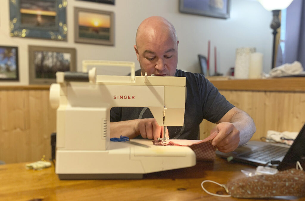 Kaiser ordered a couple of kits even though he hadn’t sewn since eighth-grade Home Economics class. He took a quick refresher on YouTube, borrowed a sewing machine and started sewing at the kitchen table. Though challenging at the start, he completed both kits, with each kit making 25 face covering masks. All that was left was for Degroat and Kaiser to ship them where they are needed most.