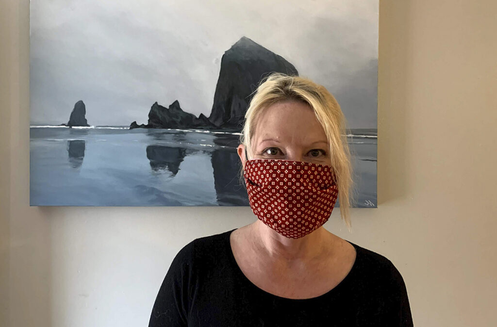 Aimee Degroat, UMF University Store manager, brought homemade masks to the Rangeley Health Center, Franklin Memorial Hospital, and mailed others to caregivers in the nursing field or relatives with compromised health situations. Submitted Image