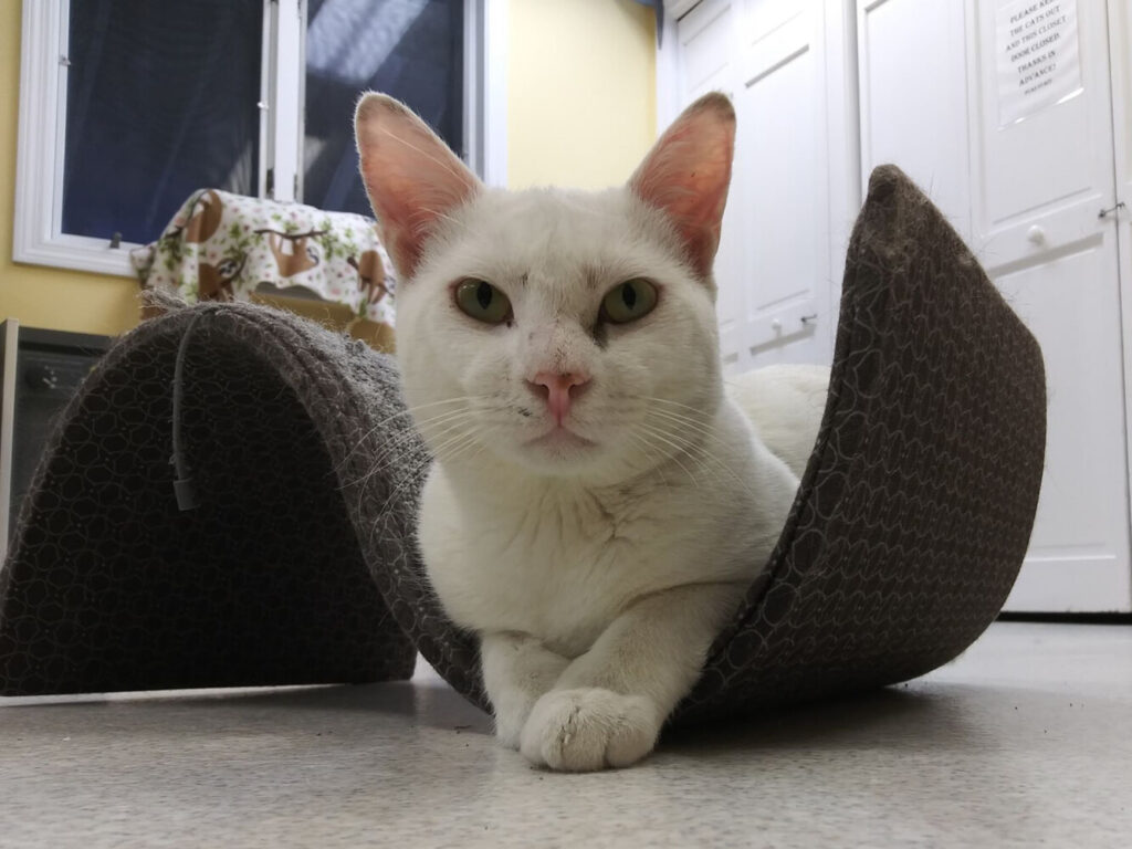 Chad, a male cat, one to three years old: Hi there, my name is Chad. I am a sweet guy when it comes to people, but I’d really prefer to be your only pet.
