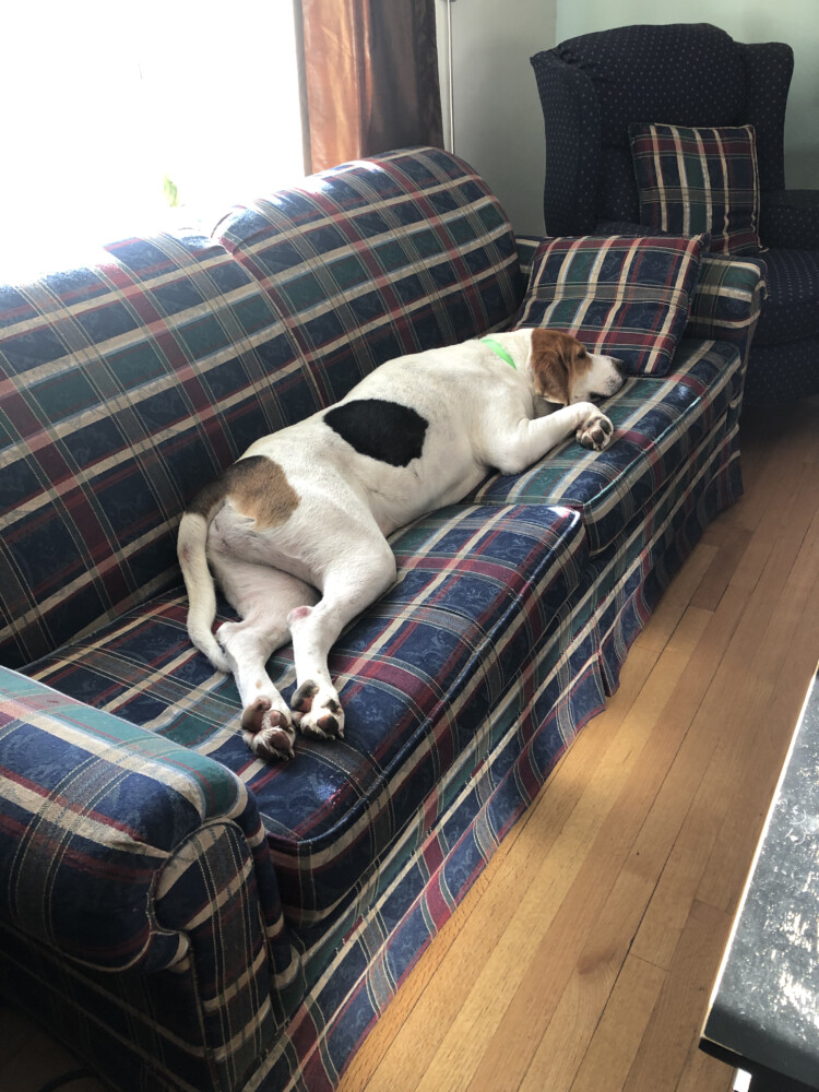 Dash, a three-year-old, male, Walker Hound: Hello, my name is Dash. I am your typical large hound dog… I like to eat, talk, sleep on couches, and cuddle. I need an owner who is hound savvy, and willing to work with me… I can be guardy with my toys and food until I trust you. I LOVE going for walks, and would love to find an active family who can keep me on a structured schedule. I do much better with female dogs than males, but I would be completely happy being your only pet. Due to my size, I would prefer a house without small children, and I do not do well with cats.