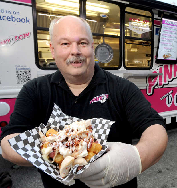 Randy Smith shows off an item from his Pinky D’s food truck in 2017. Smith says ground beef is one of his go-to ingredients at home. Russ Dillingham/Sun Journal