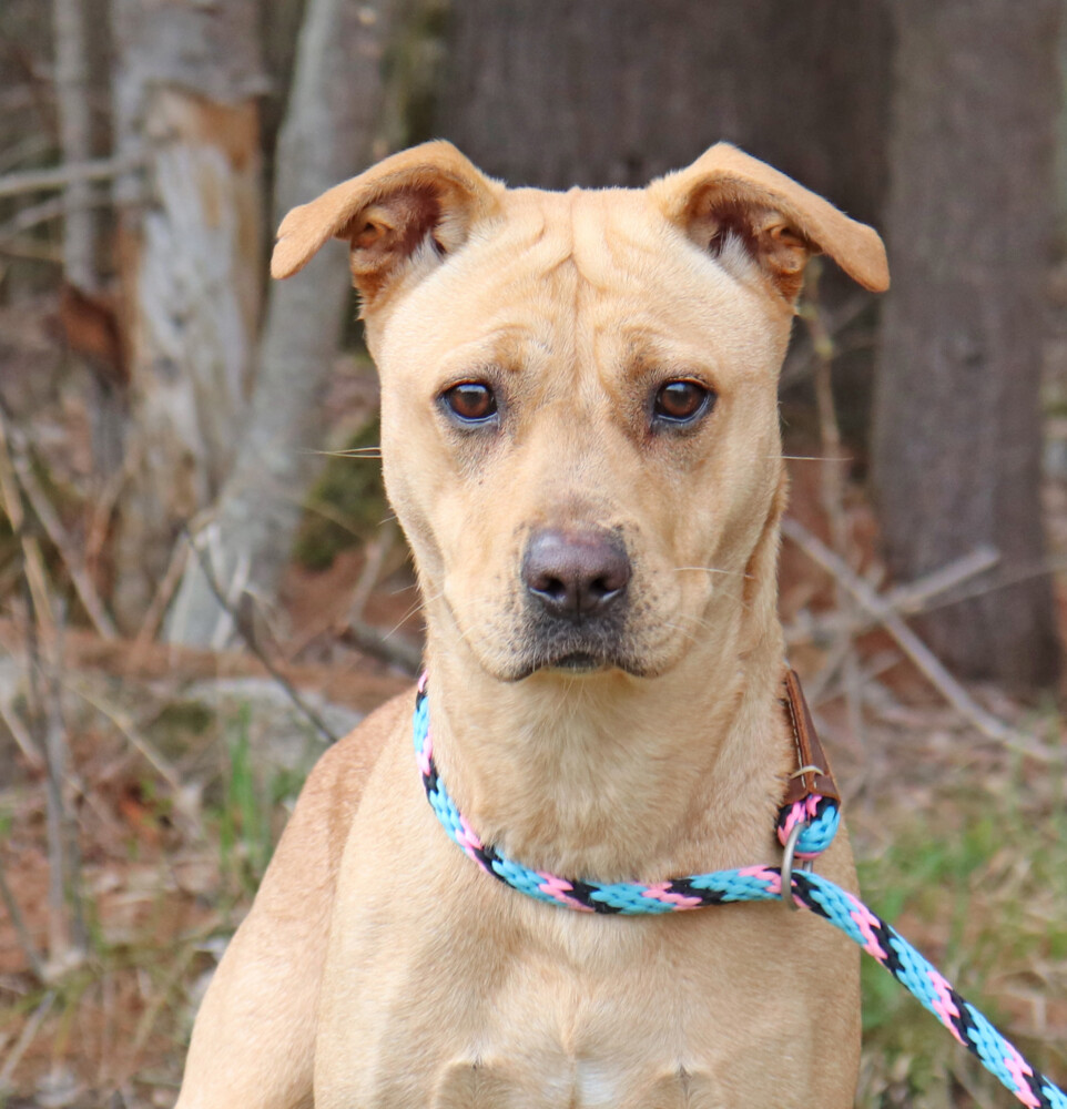 One year old Leia is a Shar Pei mix breed dog. Her pretty, brown eyes light up when she anticipates having fun.