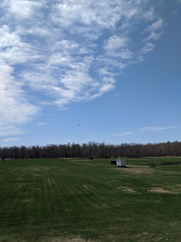 Essential workers in Maine were recognized with a flyover Tuesday, May 12. The National Guard plane was seen as it flew over Prescott Field in Farmington. Andrea Swiedom/Franklin Journal
