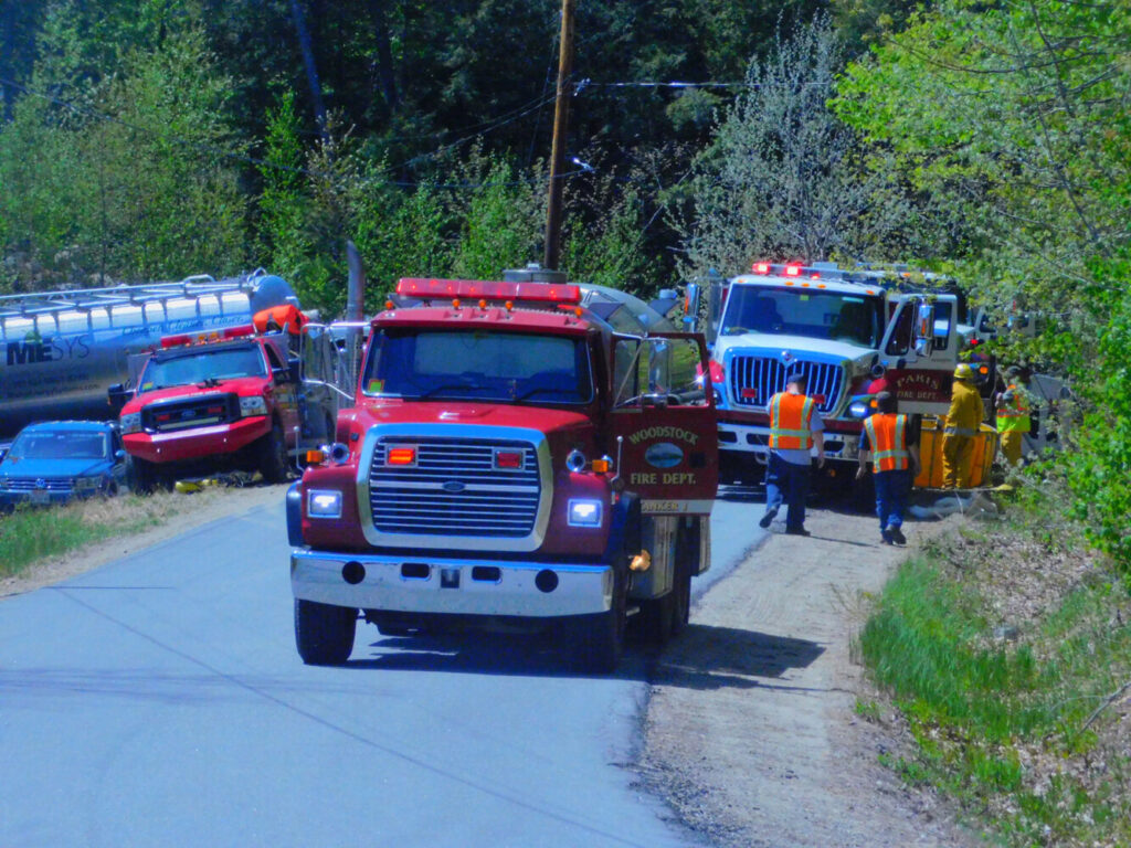 A few firemen gather by the trucks at Thursdays fire on the Richardson Hollow Road in Greenwood. Bethel Citizen photo by Samuel Wheeler