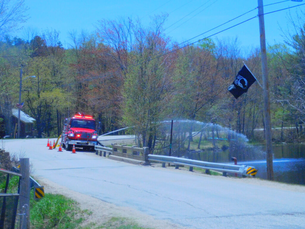 A fire truck gets more water from Hicks Pond in Greenwood City. Bethel Citizen photo by Samuel Wheeler