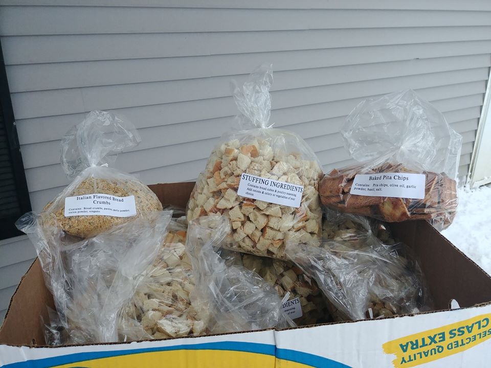 Stale breads from area food pantries have been turned into flavored croutons at Knowlton Corner Farm in Farmington. Submitted photo