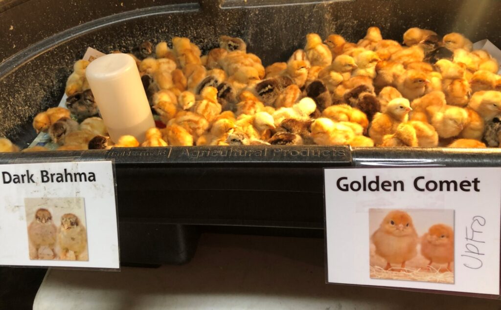 “Last spring we sold about 2,500 chicks,” said store Manager Jenna Pare of the flagship Paris Farmer’s Union store. “This year it’s over 4,000. The biggest increases have definitely been in meat chickens and turkeys. And we’re seeing a lot of first-time customers.