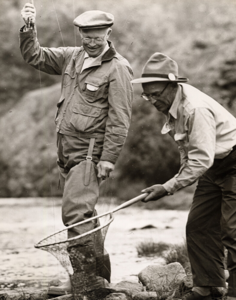 At the time, Eisenhower was still deciding whether to run for a second term in the 1956 election. During his short fishing trip to Parmachenee, he gave conflicting answers on whether he would seek re-election. In a speech on Main street in Rangeley he hinted on the difficulties of that decision after being given a fawn deer for the National Zoo in D.C. “If I had to leave these woods along these lovely lakes and streams and go to Washington, I would think, twice wouldn’t you? But I’ll take it (the fawn) down and thank you very much”. The 34th President of the United States and Don Cameron continued to stay in touch. Fly fishing can help make some fast friends.