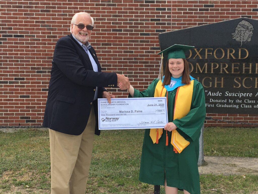 Again, congratulations to the 2020 Diane E. Curtis Medical Scholarship recipient, Marissa D. Paine, of South Paris!