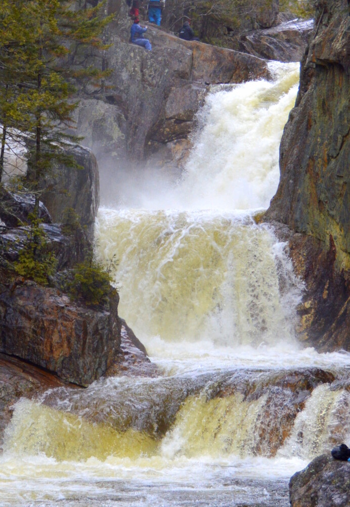 Trail Description: Walk, do not drive and follow a dirt road downhill through gravel pit keeping an eye out for red blazes. Cross Berdeen Stream, the bear left and continue following the trail (red blazed) through the woods to Mountain Brook. The trail follows the brook up stream and crosses (rock hops) the brook three times before you come to the falls. Use caution as stream crossings can be slippery and can even be dangerous or impassable during high water. Angel Falls, with a 90 foot plunge, in one of the most impressive waterfalls in Maine.