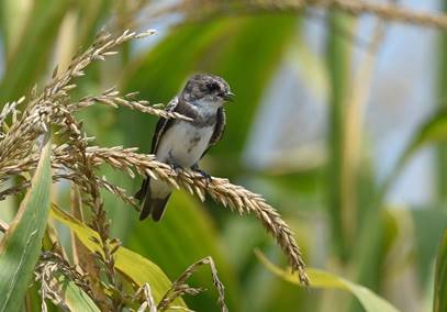 The past few weeks I’ve focused on insect eating birds. Here’s another – the Bank Swallow. (Photo by Andy Reago & Chrissy McClarren.) Bank swallows are a grayish brown on their head, back, wings and tail. They have a dark band across their breast with a white throat and belly. When flying you will note their deeply notched tail.