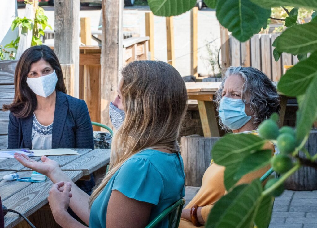 U.S. Senate candidate Sara Gideon, left, listens to Norway Selectman Sarah Carter during Monday morning’s roundtable discussion on state and local government funding at the Norway Brewing Company on Main Street. Brewery co-owner Brenda Melhus listens at right. Russ Dillingham/Sun Journal Buy this Photo