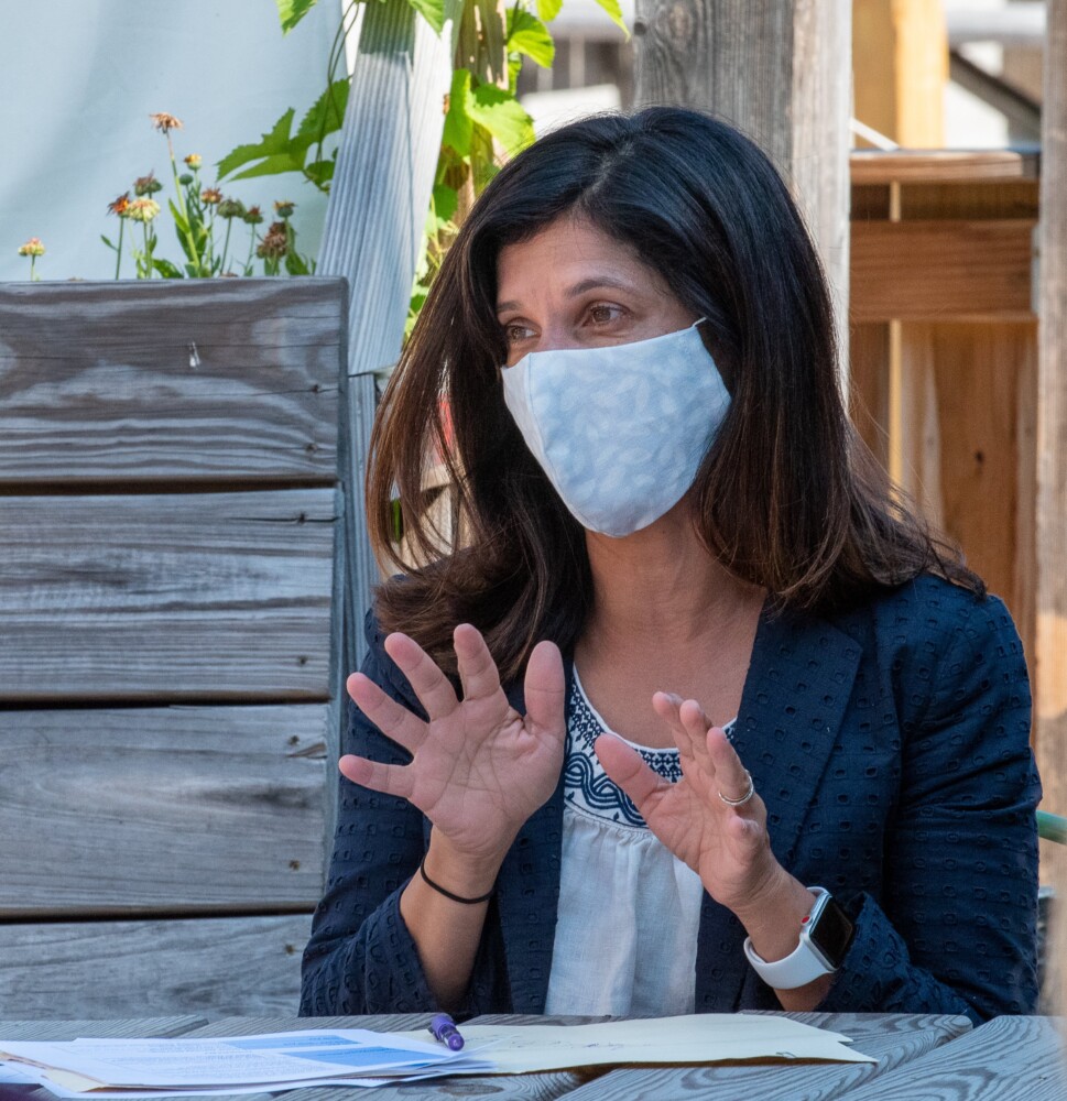 U.S. Senate candidate Sara Gideon talks with local business leaders and government officials Monday morning during a discussion on state and local government funding at the Norway Brewing Company on Main Street. Russ Dillingham/Sun Journal Buy this Photo
